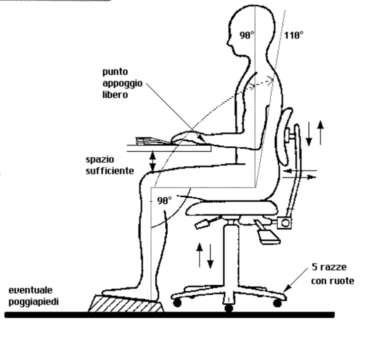 Una seduta operativa ergonomica rispetta dei parametri numerici standard, specifiche dimensioni, altezza, larghezza etc…ma naturalmente questi variano in funzione dell’individuo che utilizza la utilizza e pertanto opportuno tener conto della soggettività di ciascuno ed adattare detti parametri alle proprie necessità.